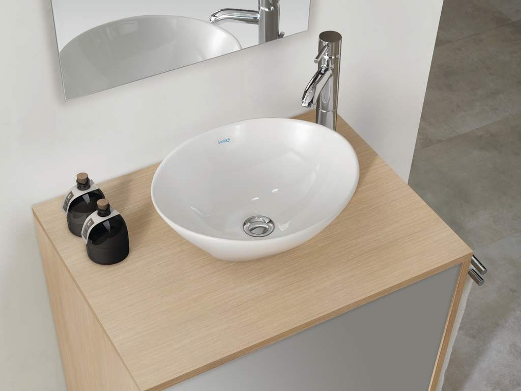 Cup é um lavatório de pousar compacto, com uma cuba funda. O seu design minimalista torna-o ideal para espaços reduzidos, combina na perfeição com toneiras de bica alta.
