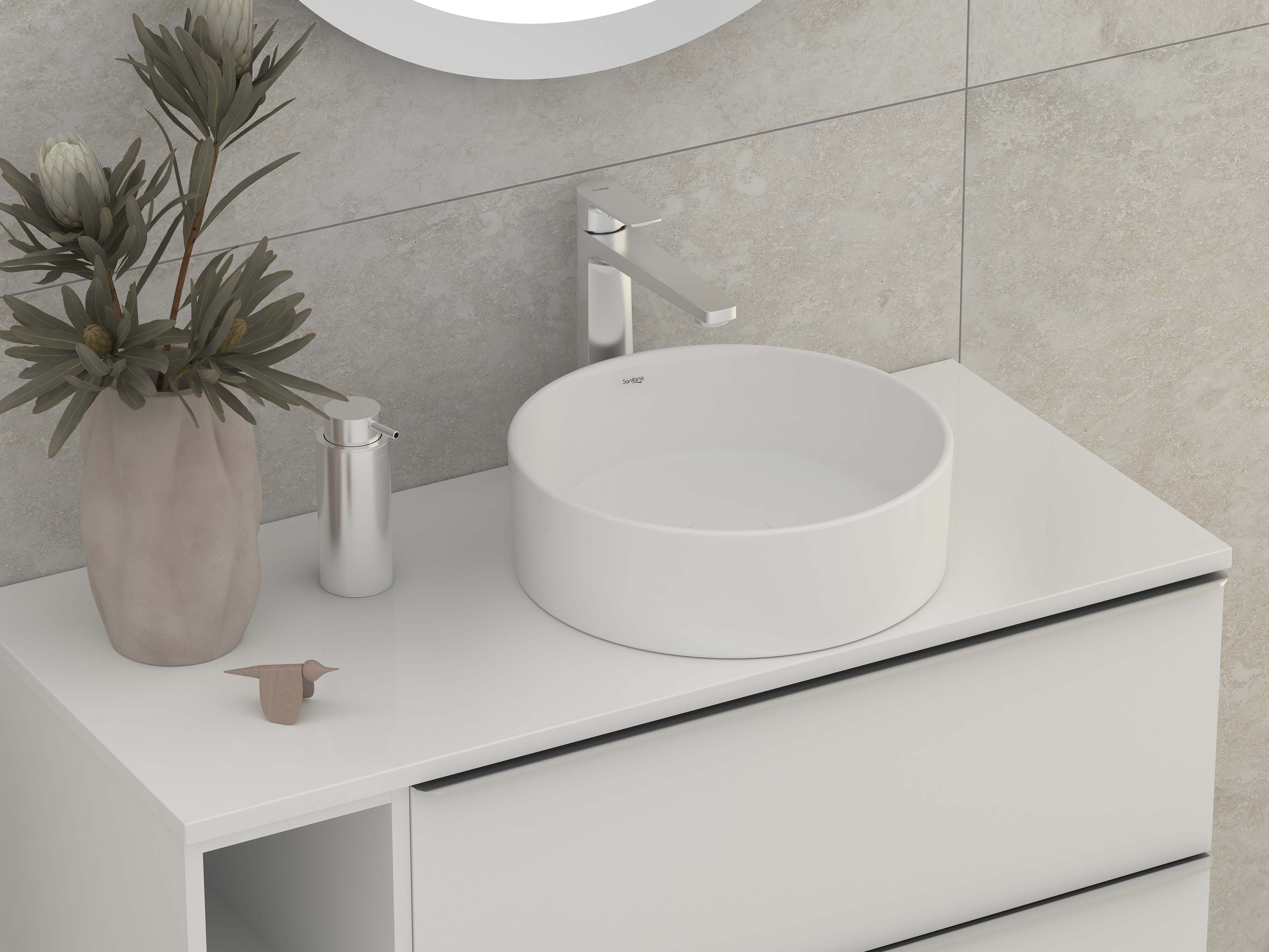 Halo é uma coleção versátil de lavatórios cerâmicos de pousar, que combinam simplicidade e elegância para todo o tipo de ambientes. Disponíveis em formatos redondos, quadrados ou retangulares, com acabamentos em branco brilhante, branco mate ou preto, os lavatórios Halo adaptam-se a todos os gostos.