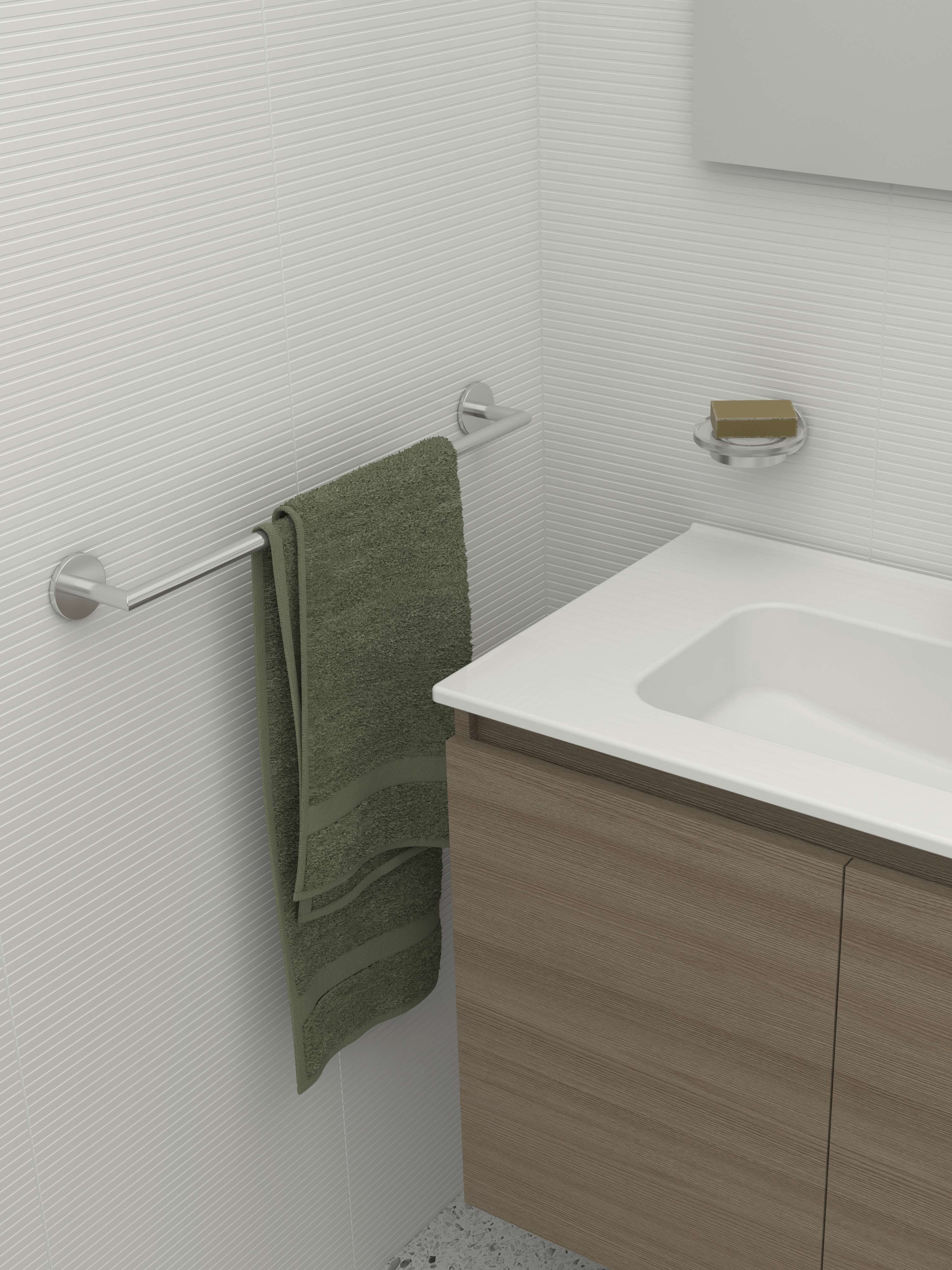 Kin Round é uma das nossas coleções de acessórios wc mais acessíveis e completas. Fabricado com materiais duráveis em cromado, cada peça pode ser facilmente instalada com adesivos. Deformas arredondadas, esta coleção acrescenta um toque clássico para um visual intemporal.