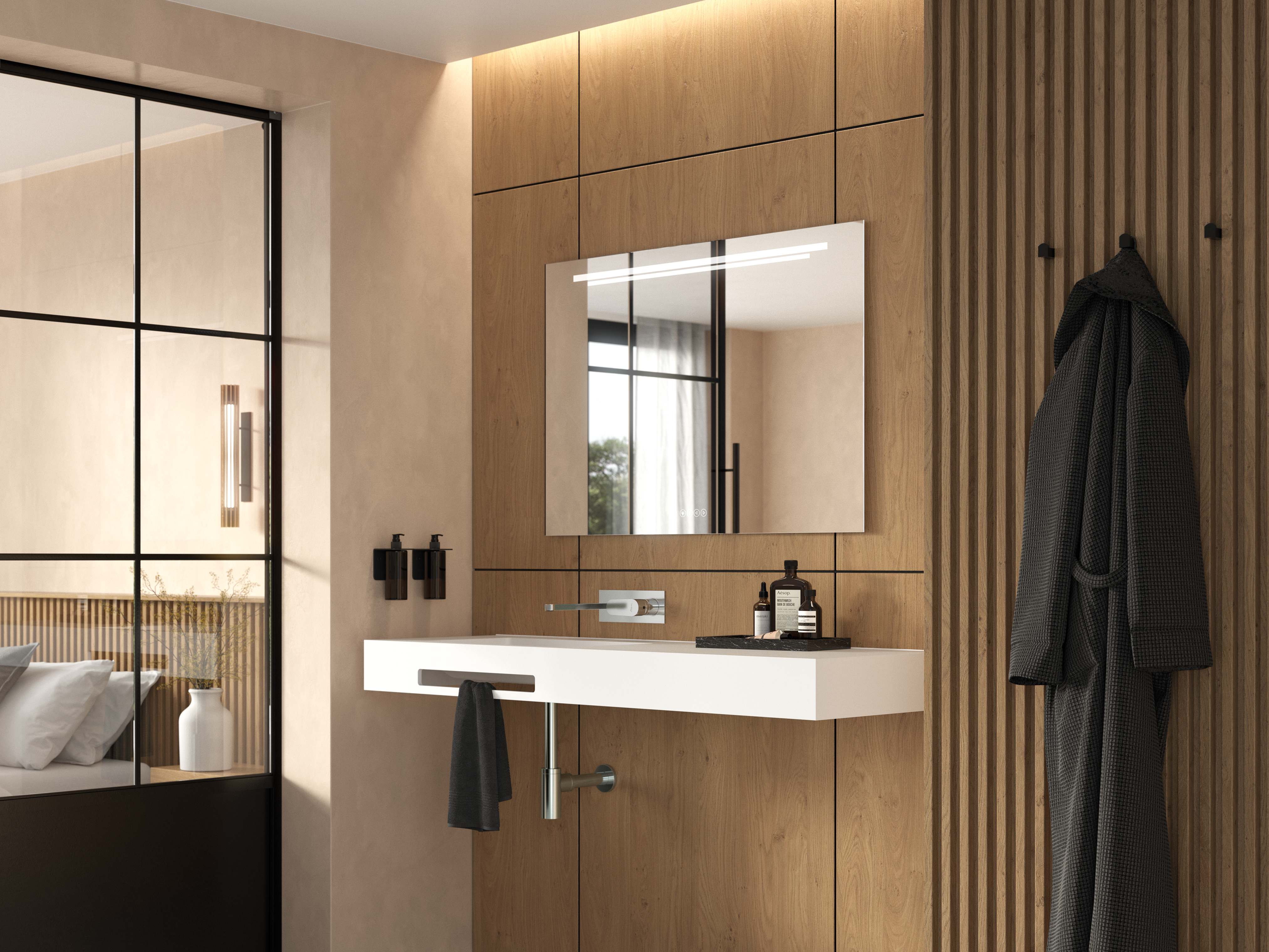Melhore a sua rotina diária com Polaris, a coleção de espelhos LED da Sanitana com tecnologia de ponta. Disponível em 3 tamanhos, Polaris integra controlo tátil, desembaciador temporizado e sistema de som com Bluetooth, ideal para atender chamadas ou ouvir música.