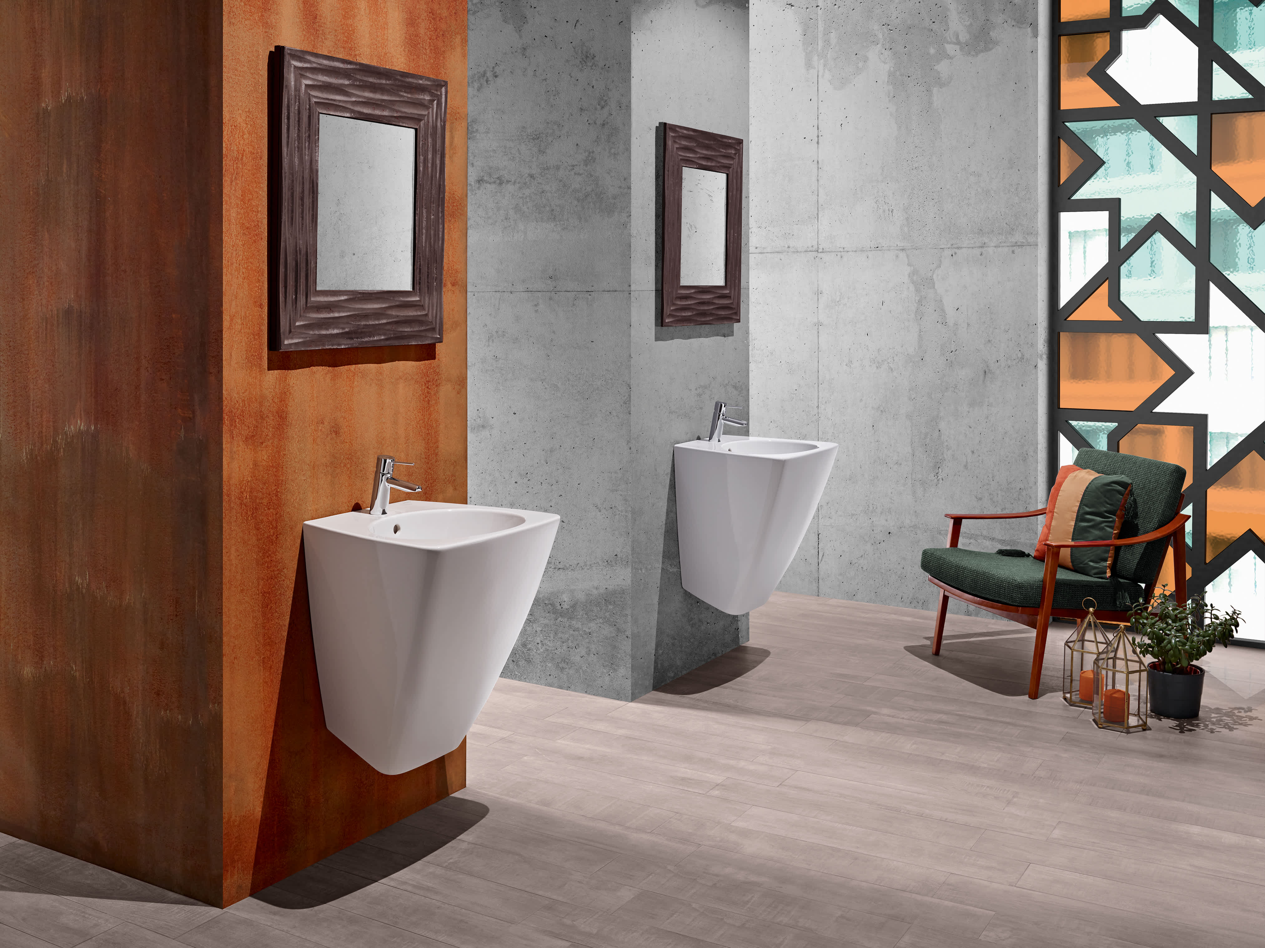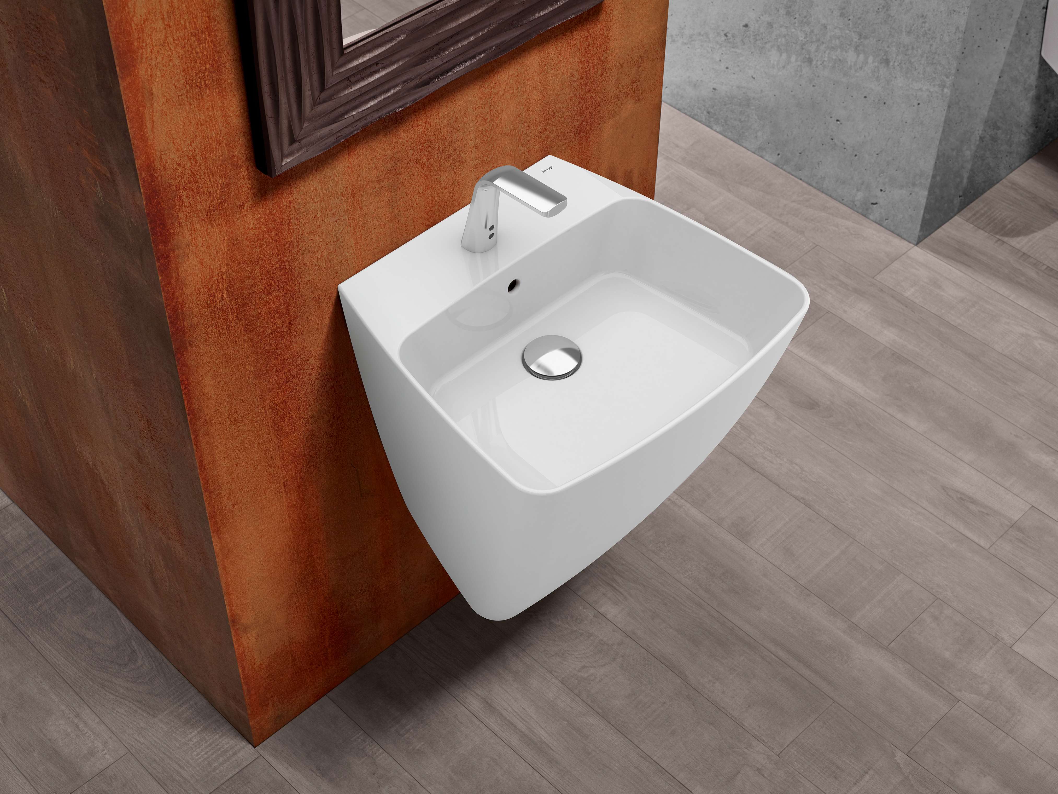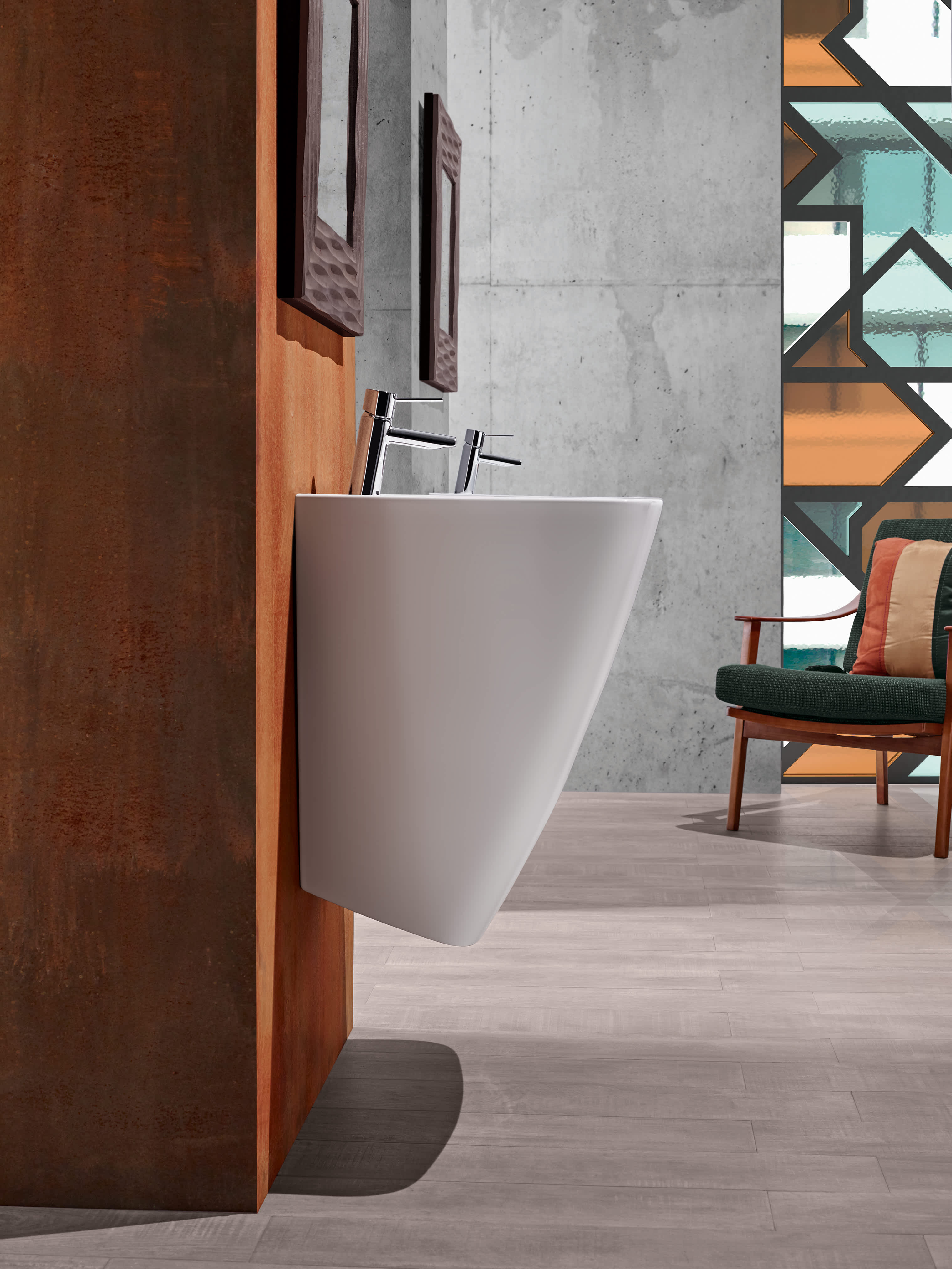 Desenhado por Antonio Bullo, Shape é um dos lavatórios cerâmicos de parede mais icónicos da Sanitana. Com um design tipo totem e um lavatório fundo, inclui orifício para torneira e furo de nível, aliando a sua forma distinta com funcionalidade