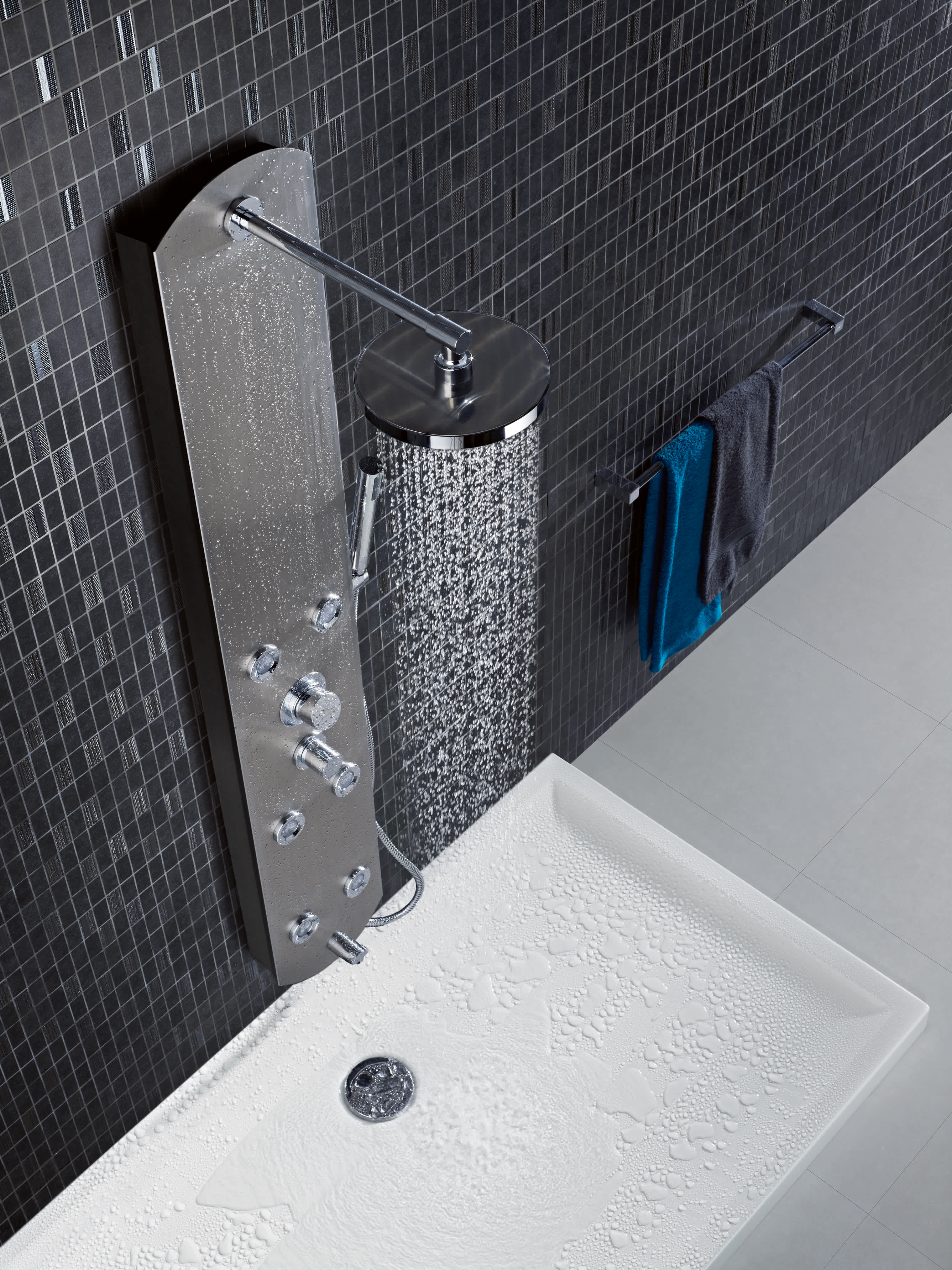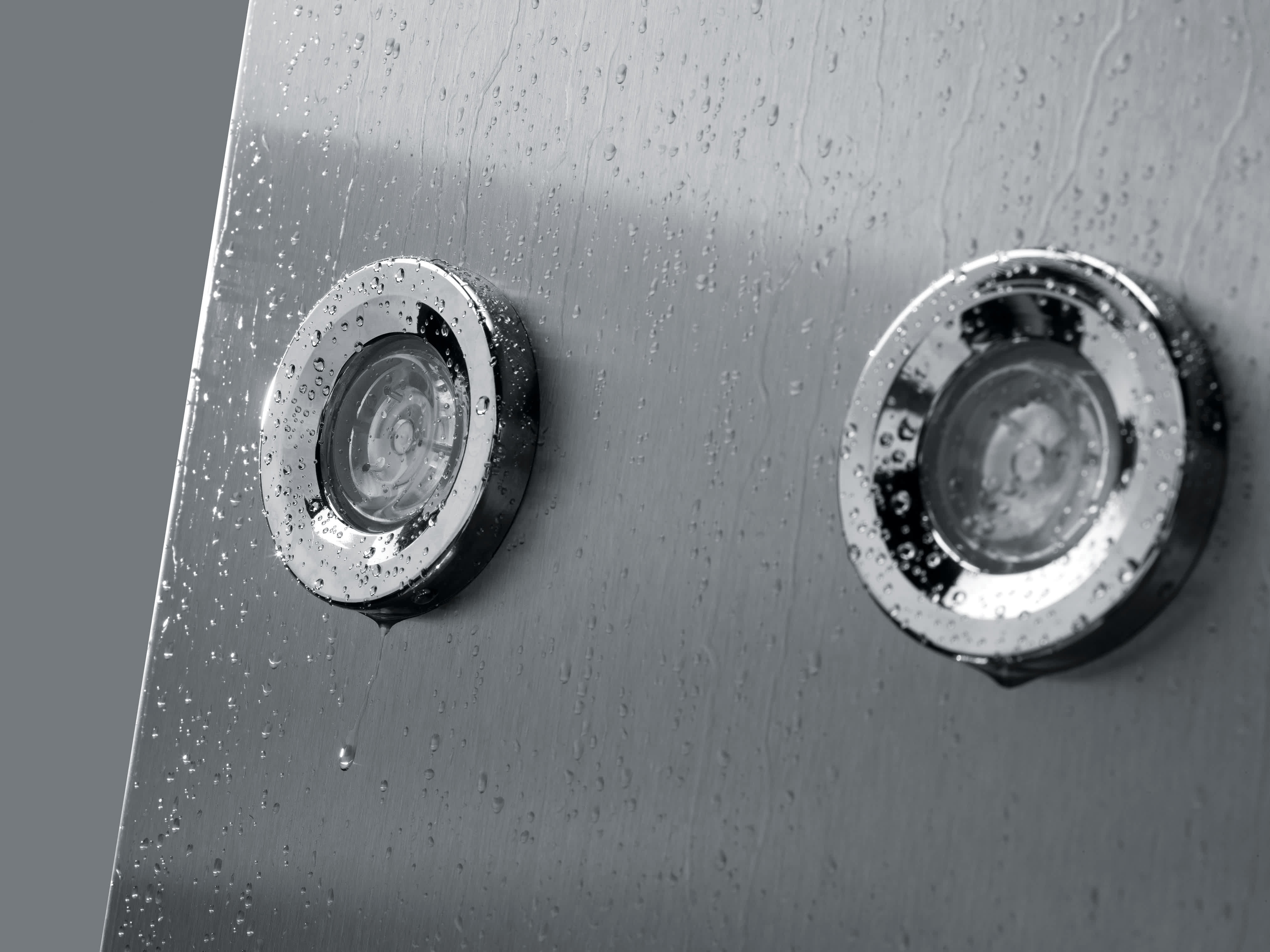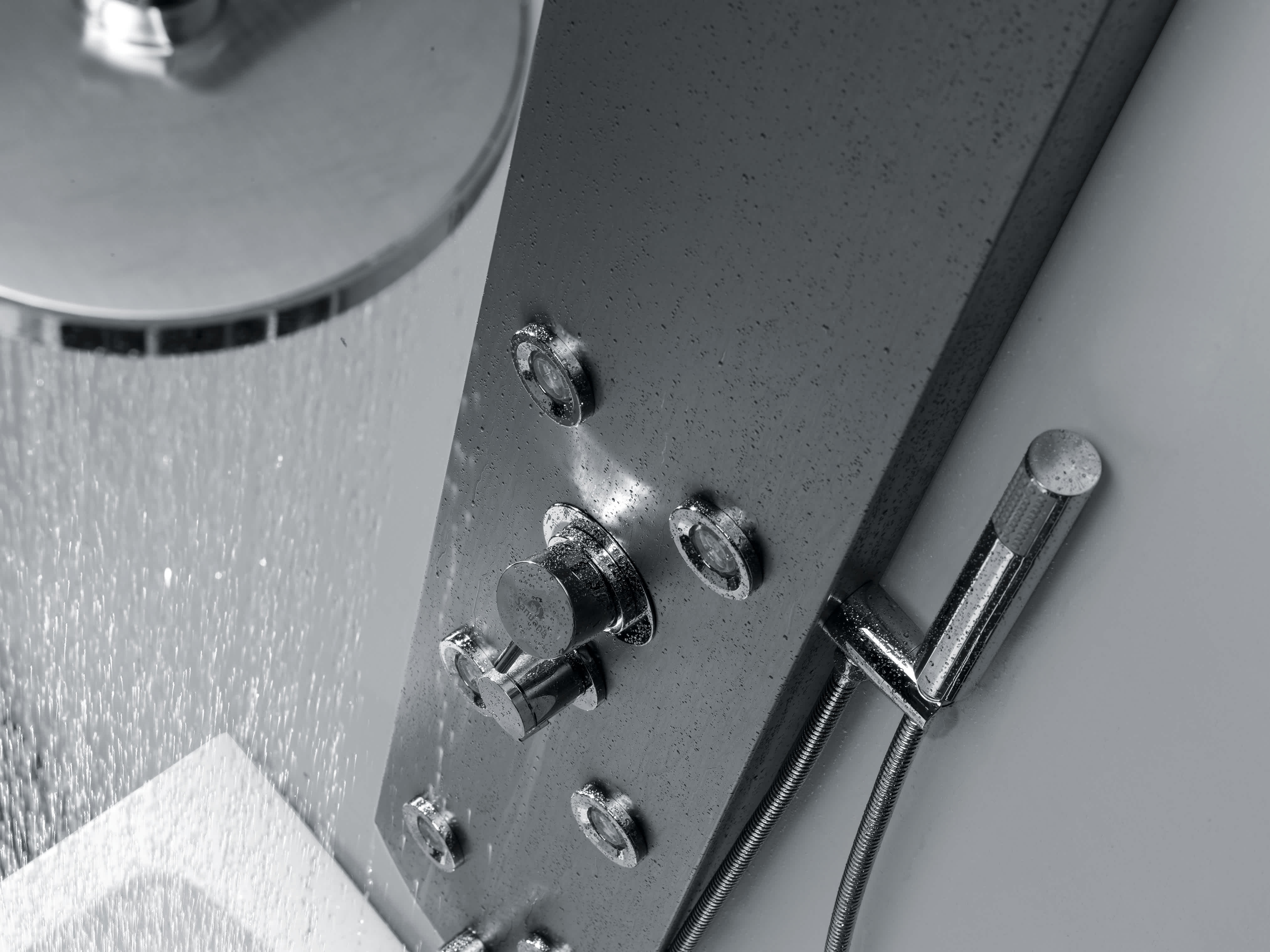 Desfrute de um duche envolvente com a coluna de hidromassagem Yn, feita em aço inoxidável resistente. Equipadas com misturadora termostática de dois manípulos e seletor de 5 funções, as colunas Yn incluem 6 jatos ajustáveis, chuveiro de mão e chuveiro superior. Disponível em preto, Yn oferece momentos de relaxamento incomparáveis.