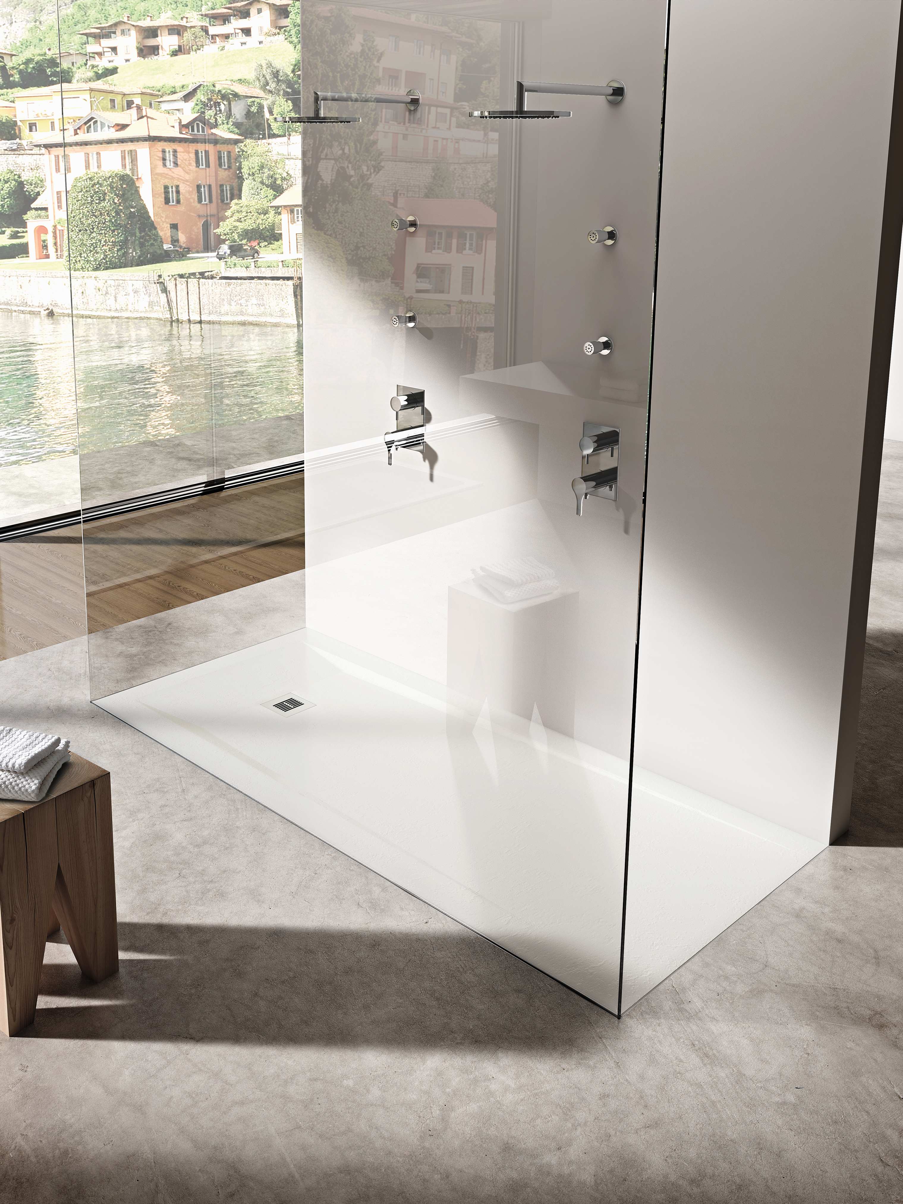 Rocks é uma coleção de bases de duche em stonex®, disponível numa vasta gama de tamanhos, com 3 acabamentos elegantes. Concebidas para combinar conforto, segurança e desempenho, vêm equipadas com válvula de escoamento de Ø90 mm e grelha em aço inoxidável, na mesma cor da base, para um visual harmonioso.