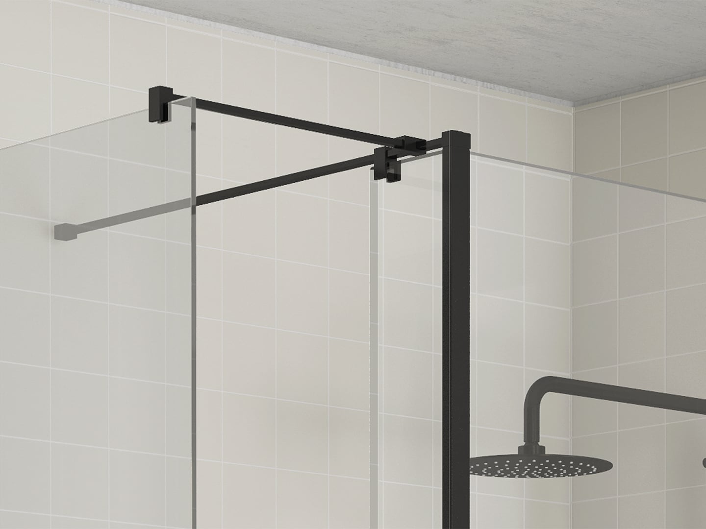 Para áreas / bases de duche quadradas ou retangulares (em canto). Modelo DF + LF (1 painel fixo - 1380mm + 1 painel lateral - 780mm). Para áreas / bases de duche com comprimento de 2000mm e larguras de 8000mm. Perfis em alumínio anodizado com acabamento polido ou preto mate. Vidros temperados de 8mm, com tratamento anti-calcário. Com acessórios em latão e zamak à cor da divisória. Reversível. Na embalagem: divisória de duche e kit de fixação.