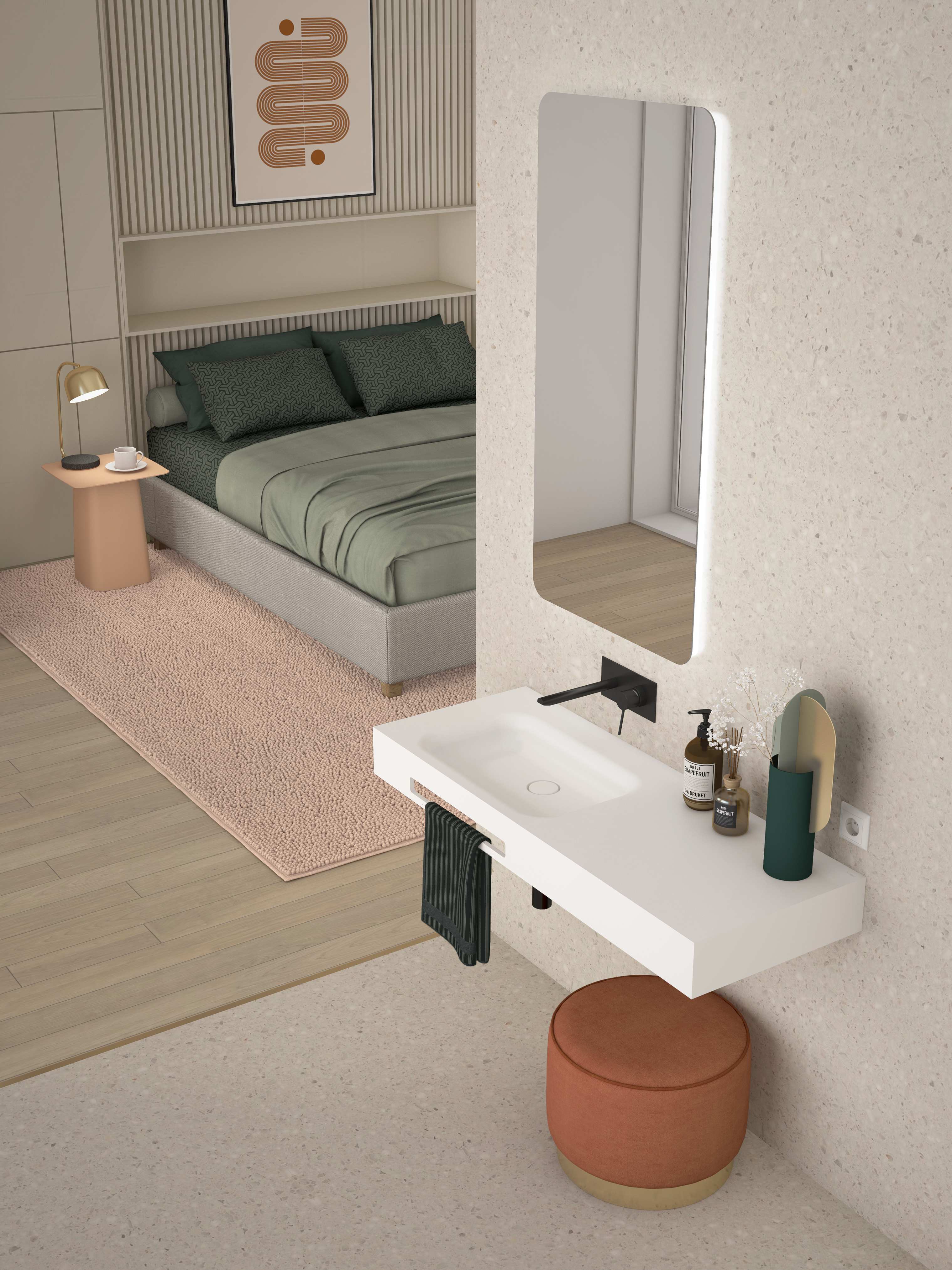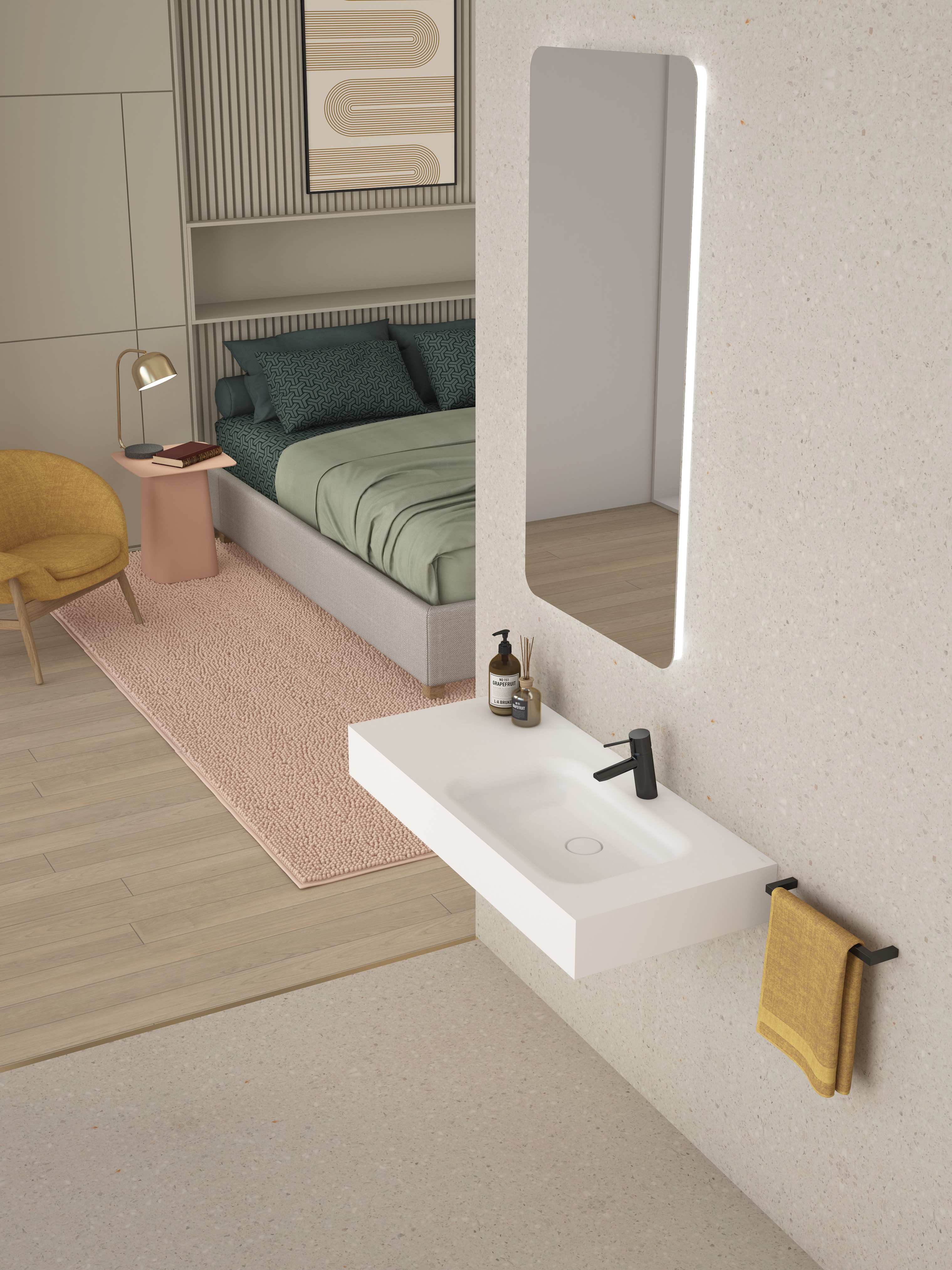 Procura superfícies suaves e com um acabamento perfeito? A coleção Velvet oferece uma solução em surfex®, com superfícies homogéneas, não porosas, não tóxicas e resistentes a químicos. Disponível em versões suspensas ou encastradas, com ou sem furos para torneira e suportes para toalhas. Os tamanhos variam entre os 60 e os 160 cm.